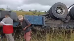 De acordo com informações de testemunhas, o condutor teria perdido o controle do caminhão após perceber uma falha mecânica. Para evitar colidir contra outros veículos, o motorista fez com que o caminhão saísse da pista, o que resultou no capotamento do veículo que estava estava carregado com sacos de ração.