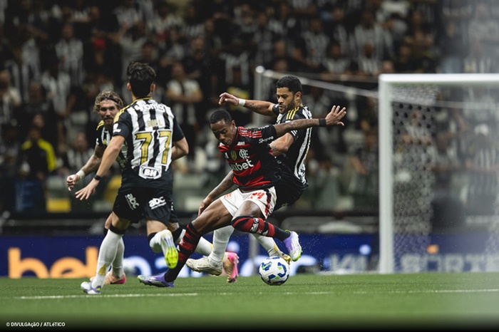 Nas cobranças, brilhou a estrela de Everson, que defendeu um, converteu o seu e garantiu a classificação mineira: 4 a 3. Agora, o time comandado por Cuca aguarda sorteio para conhecer seu próximo adversário na competição. Fla é melhor e iguala agregado Com a obrigação de vencer, o Flamengo fez o que se esperava dele e partiu para cima do Atlético Mineiro na Arena MRV. Agressivo na marcação, o Rubro-Negro adiantou suas linhas e criou problemas para defesa alvinegra.