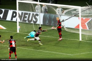 Já no Flamengo, Bruno Henrique e Pulgar foram as novidades. No contra-ataque, o Tricolor que se deu melhor. Aos 7, Moreno ficou com a sobra, tabelou com John Kennedy e depois serviu Serna na ultrapassagem. O colombiano fuzilou e abriu o placar.  O gol mudou a dinâmica da tabela e o Flamengo voltou a ter maior posse de bola e rondar a área na busca pelo empate.