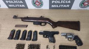 A Polícia Militar apreendeu uma carabina, uma pistola e um revólver na casa de um suspeito de chegar embriagado, insultar e expulsar a esposa de casa, na noite desse sábado (29), no bairro de Manaíra, na orla de João Pessoa. Equipes do Batalhão Especializado em Policiamento Turístico (BEPTur) foram até o local depois de serem acionadas pelo número 190.