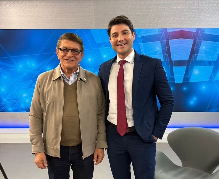 O presidente João Teodoro da Silva e o jornalista da Record News, Rafael Algarte