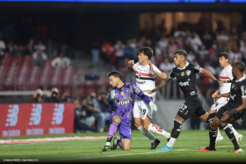 O Botafogo até esteve mais incisivo, mas as finalizações acabaram bloqueadas no meio do caminho e sem gerar perigo. A primeira chegada perigosa do Alvinegro no jogo foi aos 15, quando Matheus Martins pegou uma sobra na área, emendou um chute com a bola no alto e mandou à direita da meta. No jogo mais aberto, o São Paulo circulou a bola com mais facilidade, restando apenas finalizar.