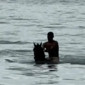 Vídeo: montando cavalo, homem mergulha no mar de Camboinha